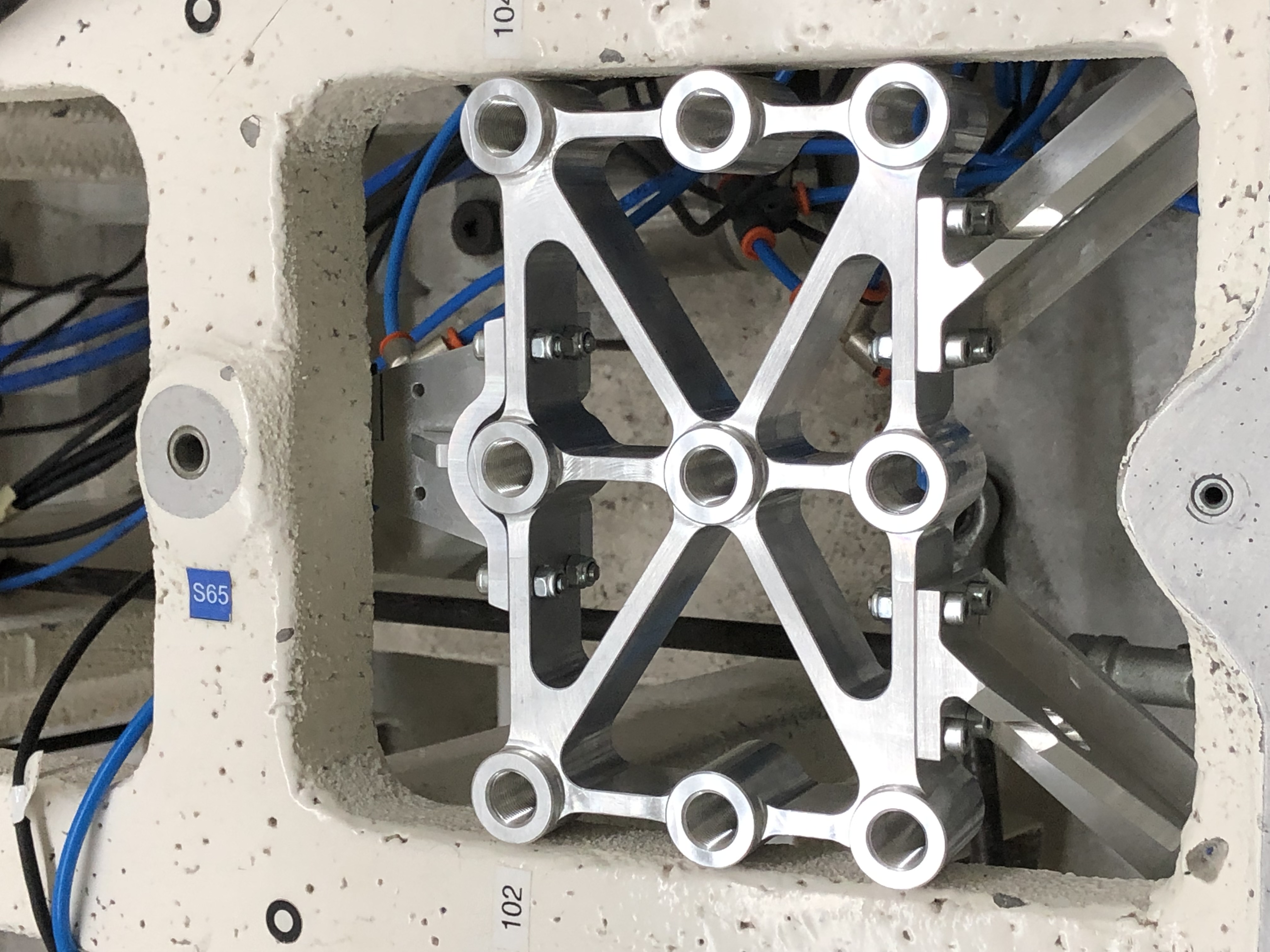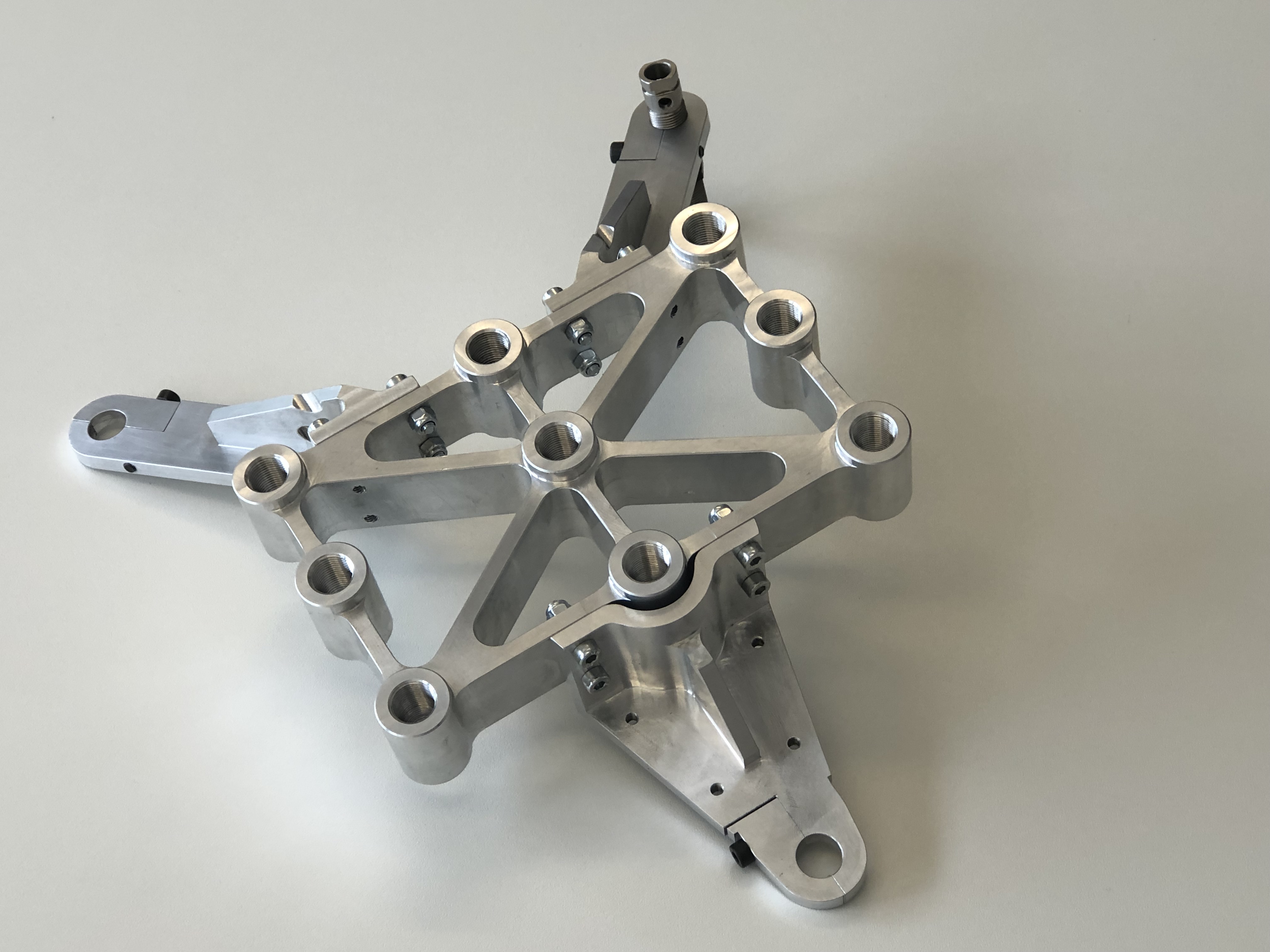 - Daarna werd de support 5-assig gefreesd in aluminium en eveneens geassembleerd én gemonteerd in de productie.